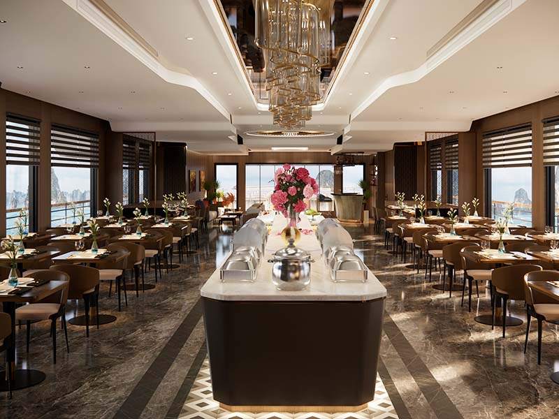 07:00: Enjoy breakfast with a menu including: sandwiches, pastries, eggs, ham, sausage…. ful-fill the energy to be ready to discover the Cat ba island – Lan Ha bay.