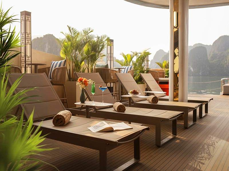 17:15 Unwind as the sun sets over Halong Bay. Indulge in an elegant "Afternoon Tea" or your favorite drink at the Calista Breeze Bar. Take advantage of the Happy Hour "Buy 2 Get 1 Free" offer from 17:30 to 18:30, featuring exclusive Calista Cruise beverages paired with delicious light bites.