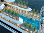 16:30 - 17:45 On the journey back to the port, guests can enjoy delicate snacks with romantic live music at sunset or relax in Vietnamʼs largest luxury pool. Immerse yourself in an inspiring live music atmosphere amidst the sea and sky wonder, where melodious tunes blend with the sound of the waves.